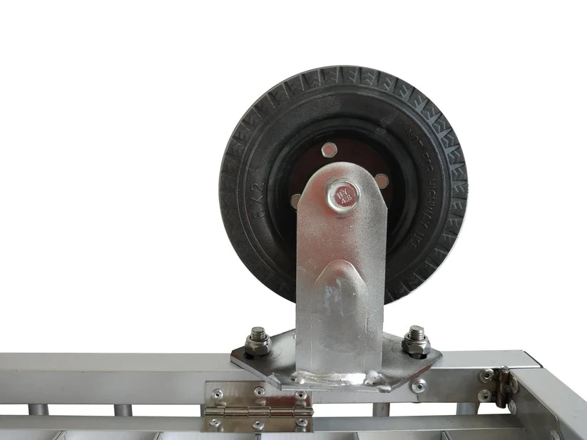 - Height: 76cm with 4″ nylon wheels, 83cm with 6″ rubber wheels