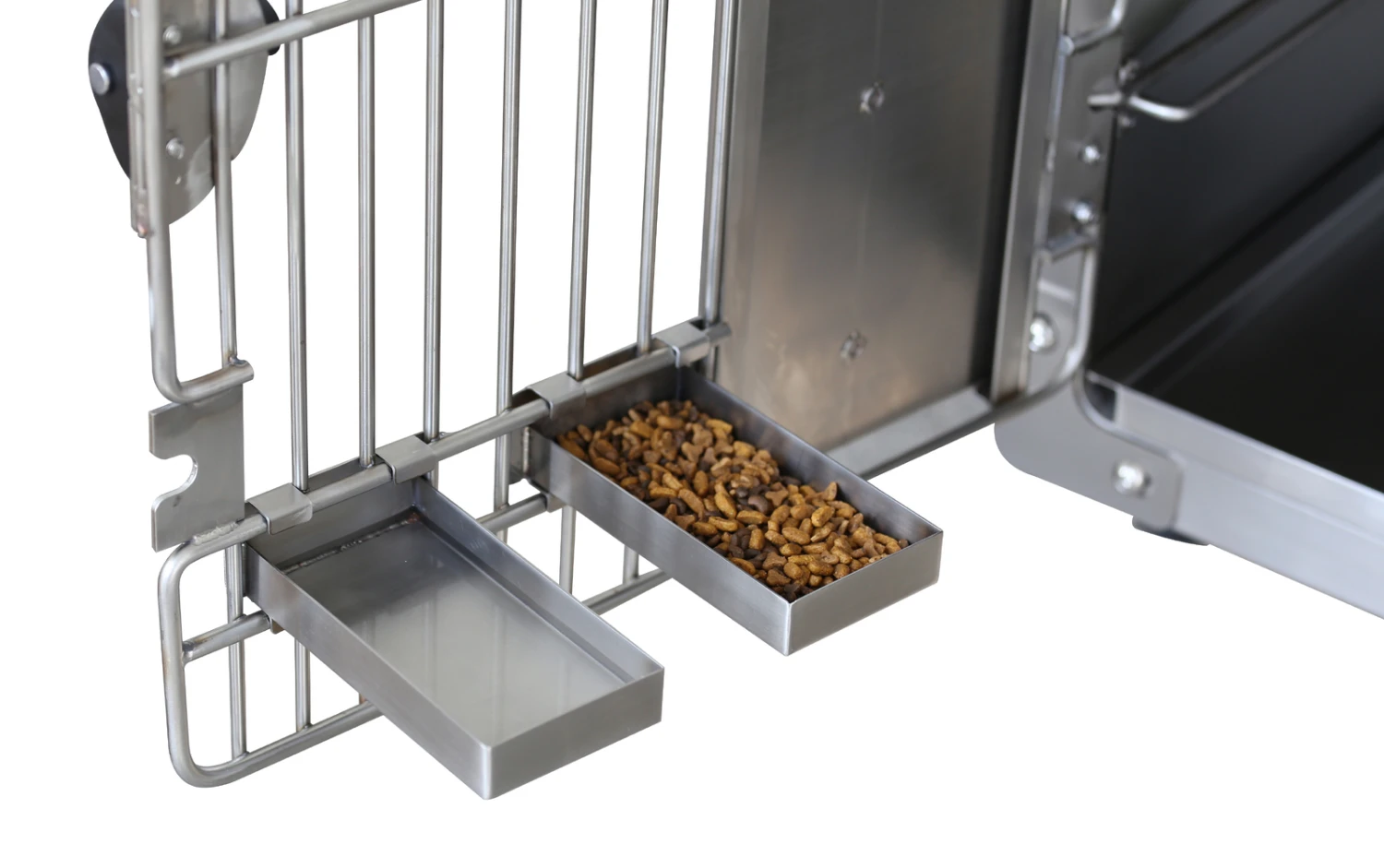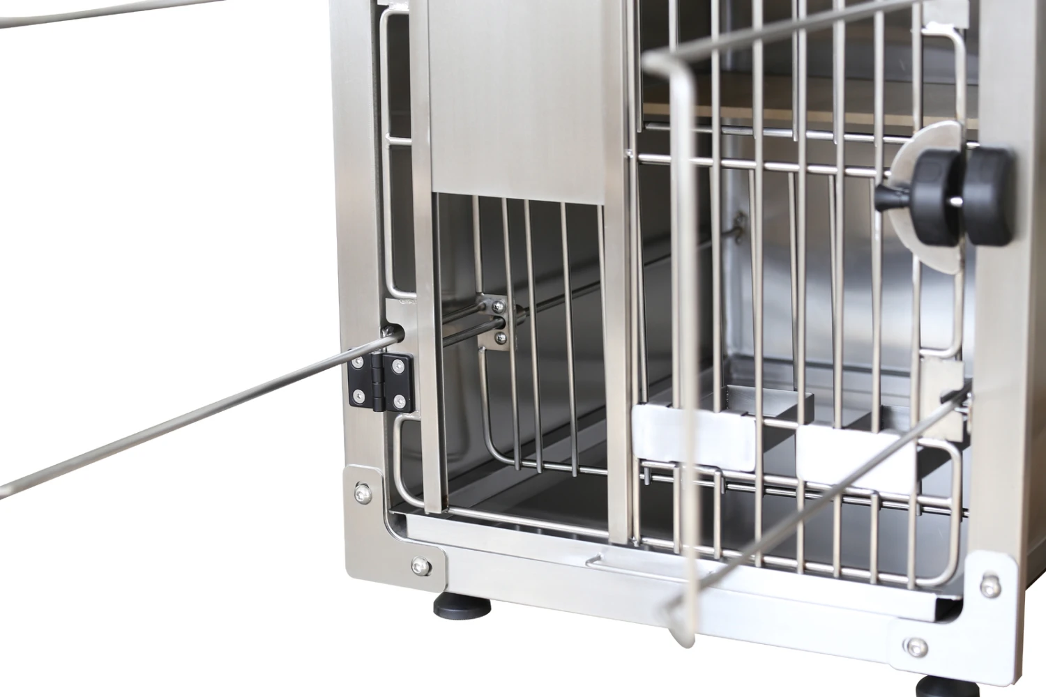 - Strong front door made of 8mm and 6mm stainless steel rods makes for a safe and secure area, with other options like transparent door for theapy purpose.