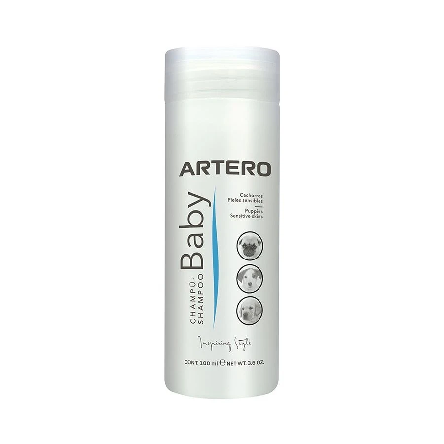 - Artero Baby Shampoo is designed for puppies aged 1 to 8 months. Their fur and skin tend to be more sensitive and require extra care as they are still in a developmental stage.