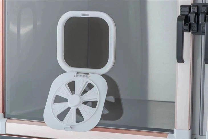 In many cases, especially with exotic and avian patients, where transfusion is not easy, nebulization through respiratory system is one of the most efficient treatment ways to administer drugs. This is why we found it necessary to include a built-in nebulizer on our TSAAS ICUs. Biomedical engineering research has shown that drugs with atomized particles of about 3-6 microns can enter the bronchi, and drugs with atomized particles of less than 2 microns can enter the alveoli. TSAAS ICU has a built-in air compression medical nebulizer, which produces drug atomized particles below 0.5 microns, creating an ultra-fine mist for pets to inhale. There is little to no drug residue at this size of micron, and the rate of utilization of the administered drug increases, making it very suitable for the treatment of diseases of the lower respiratory tract of pets. The medical nebulizer is installed outside the ICU inner cabin to reduce noise and aiding in a quieter environment for the pet to recover.