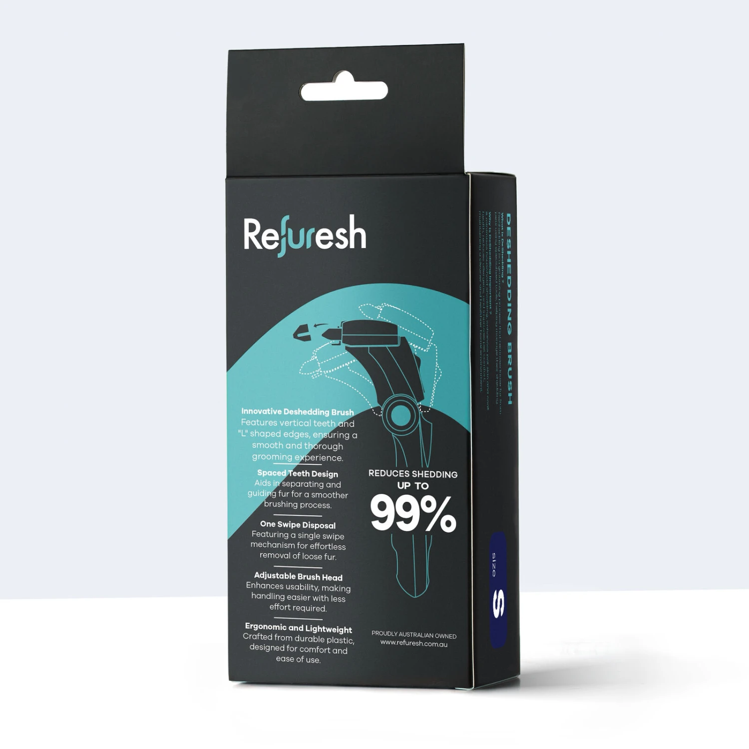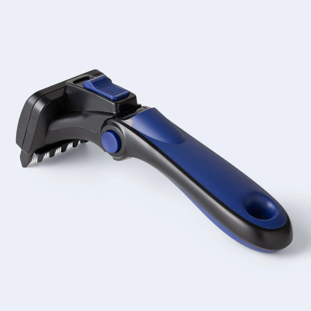 Innovative Deshedding Brush features vertical teeth and “L” shaped edges, ensuring a smooth and thorough grooming experience. Spaced teeth Design aids in separating and guiding fur for a smoother brushing process. One Swipe Disposal featuring a single swipe mechanism for effortless removal of loose fur. Adjustable Brush Head enhances usability, making handling easier with less effort required. Ergonomic and Lightweight crafted from durable plastic, designed for comfort and ease of use.