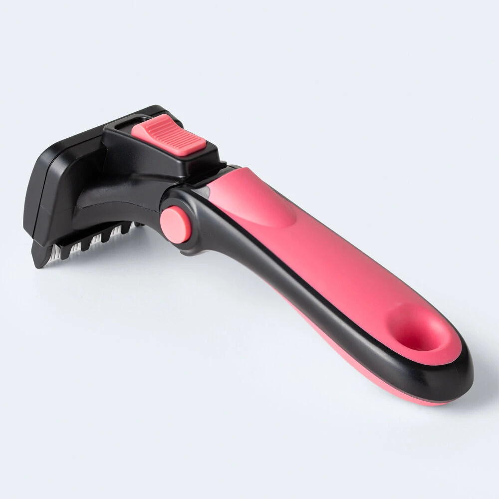 Innovative Deshedding Brush features vertical teeth and “L” shaped edges, ensuring a smooth and thorough grooming experience. Spaced teeth Design aids in separating and guiding fur for a smoother brushing process. One Swipe Disposal featuring a single swipe mechanism for effortless removal of loose fur. Adjustable Brush Head enhances usability, making handling easier with less effort required. Ergonomic and Lightweight crafted from durable plastic, designed for comfort and ease of use.