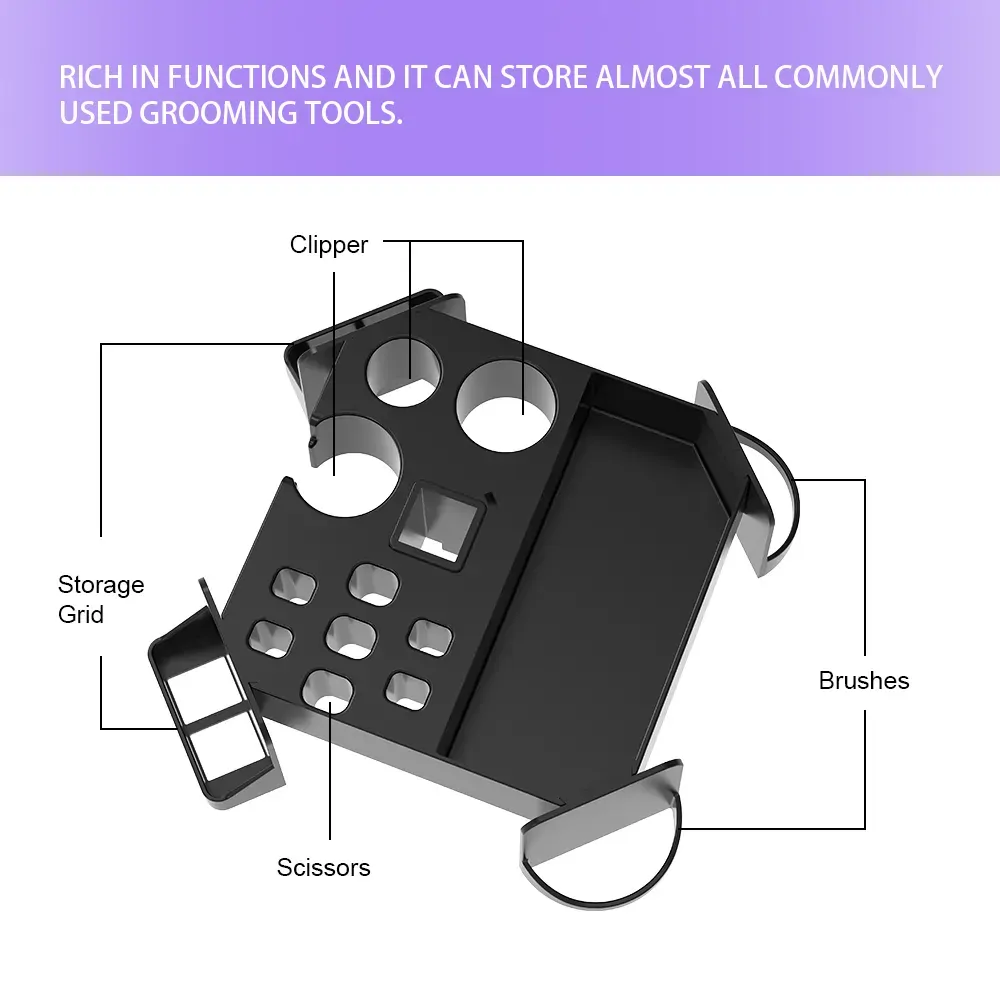 - Hold a wide range of grooming tools eg clippers, brushes, scissors and nail clippers