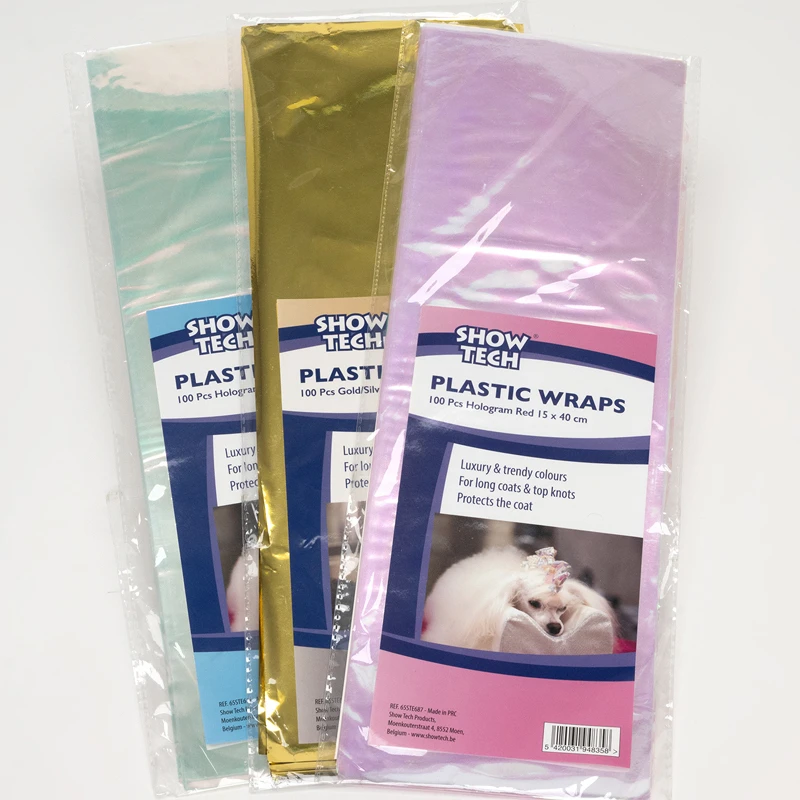 To make wraps you will need, in addition to this special wrapping material (plastic wraps), oil, a needle comb, a brush and elastic bands. We recommend that you wash the coat at least once a week and use a nourishing conditioner or hair mask and treat the coat once or twice a week with Show Tech+ Moisturizing Coat Oil to maintain the coat and bring back its natural balance. You can apply the oil the night before a wash, just after a wash, or mid-week between washes.