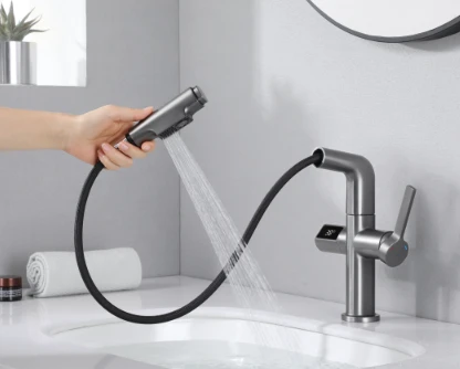 - Pull-out faucet with hot/cold water, Intelligent LED temperature sensing digital display of water temperature