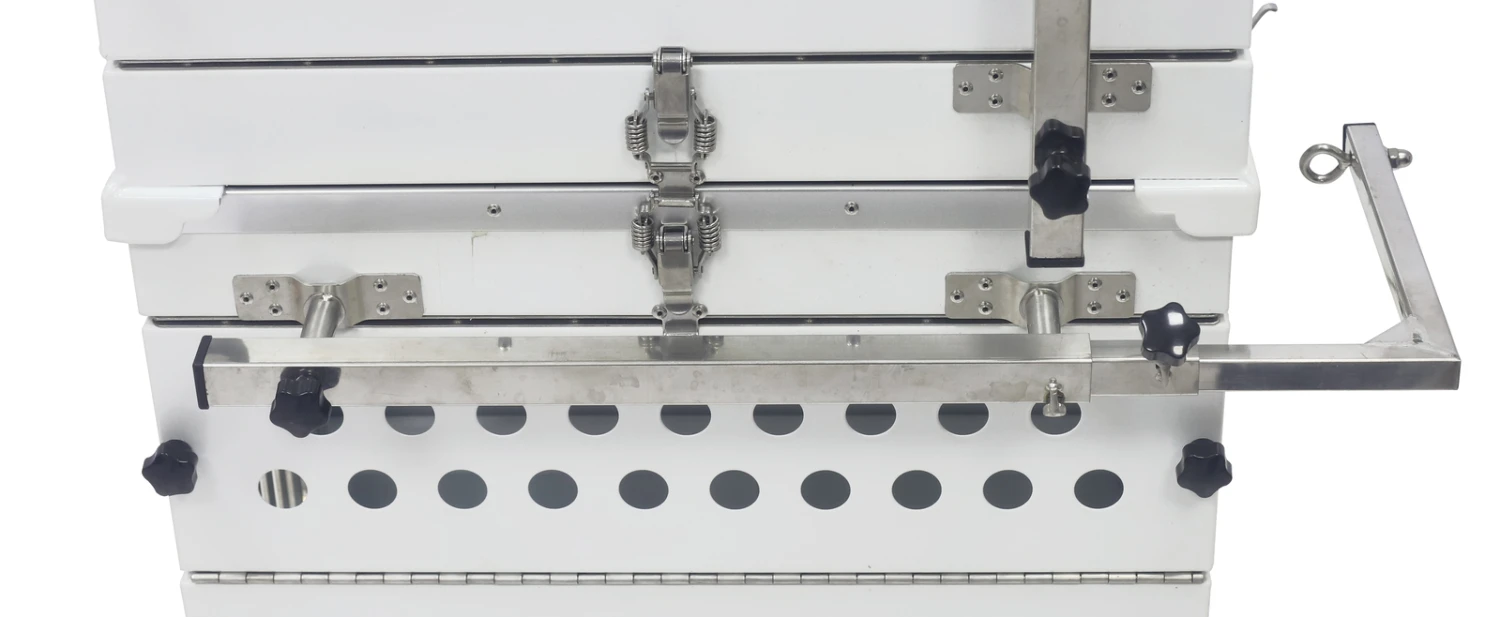 - There is a stainless steel grooming arm included, it can be folded and stored at side of the cage.