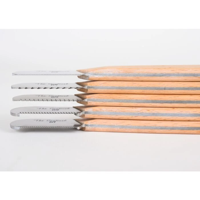 The Sentinel Stripping knives are handmade and manufactured in Belgium under supervision of the famous breeder and groomer Rony Demunter. The materials used are a high-quality metal alloy which is stronger and lighter than other knives and very light – each knife weighs under 30 grams. The Beech wood used to produce the handles comes from sustainable European forests and the varnish is FCS approved as a safe A+ for the environment.