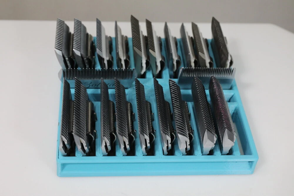 - The blade tray can hold up to 20 wide blades or 24 standards blades and keep them organized.