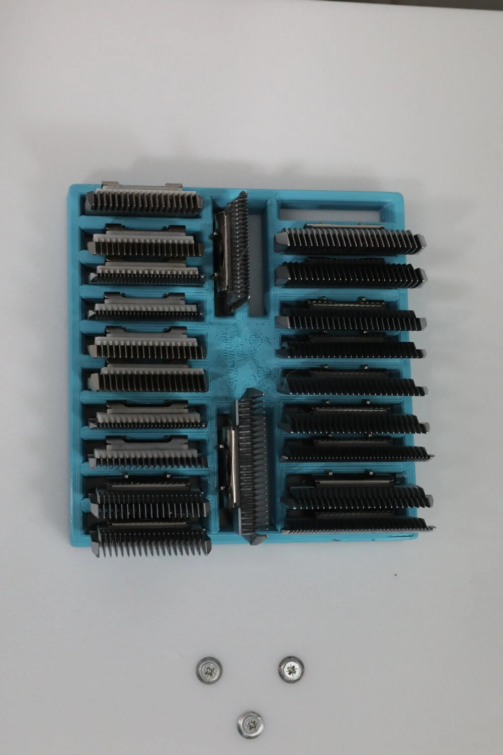 - The blade tray can hold up to 20 wide blades or 24 standards blades and keep them organized.