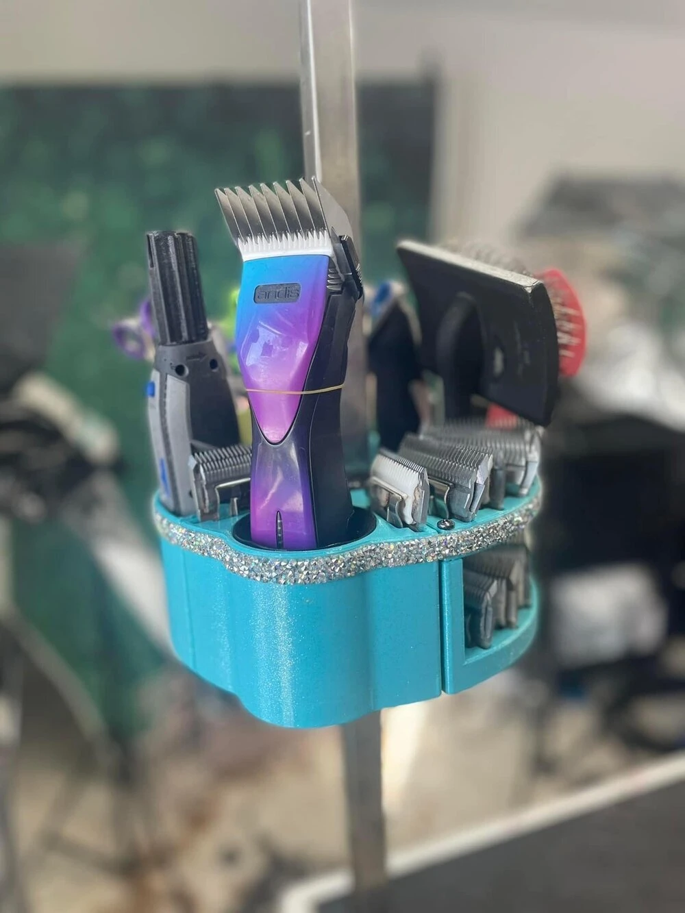 - It can hold shears, clipper blades, cordless clippers, combs, brushes, nail clippers, nail grinders, spray bottles, and more.